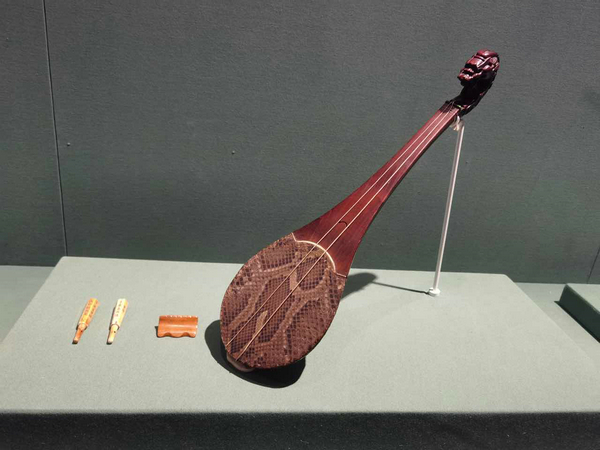 Musical instruments from the Palace Museum collection are displayed echoing themes of murals in Mogao Caves.[Photo by Wang Kaihao/China Daily]