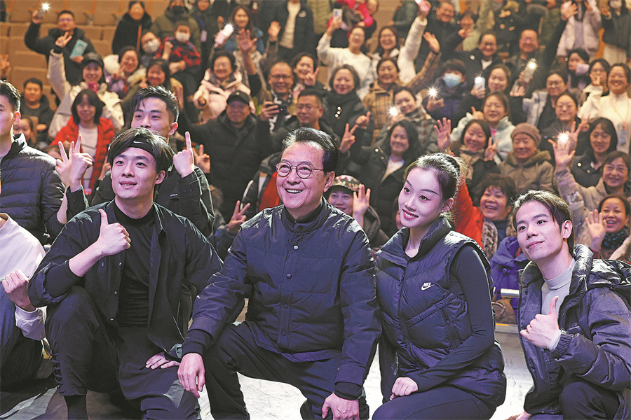 Director Zhang Jigang (center) meets performers and the audience.[Photo provided by Zhu Xingxin/China Daily]
