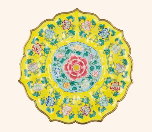 Flower-shaped painted enamel plate decorated with interlocking peony motifs, Qing Dynasty [Photo/Official WeChat account of Jiangxi Provincial Museum]