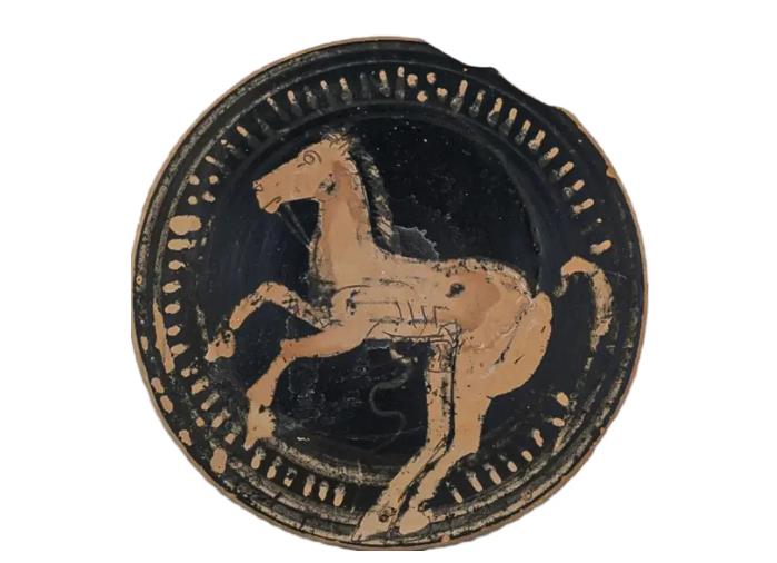 Black-lacquered high-stemmed plate decorated with a horse motif, 4th century BC, from the collection of Turin’s Museum of Antiquities [Photo/Official WeChat account of the Museum of Wu]