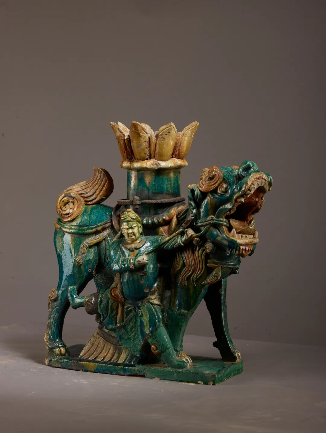 Statue of a martial figure and a lion, dating back to the Ming Dynasty (1368-1644) [Photo/Official WeChat account of Shanxi Museum]