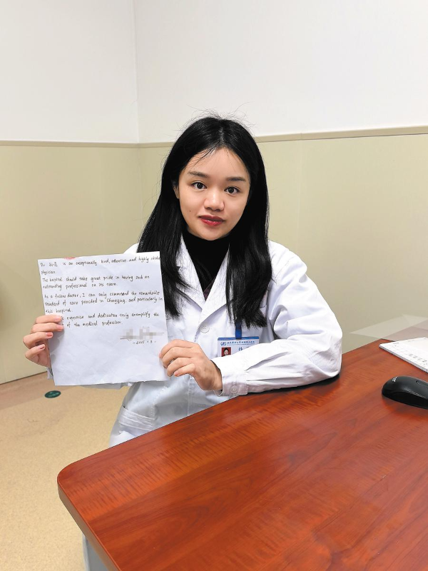 A Chongqing doctor recently received a thank-you note from a foreign patient praising her exceptional medical services, reflecting how the southwestern municipality's healthcare system is improving and becoming more convenient for foreign patients.