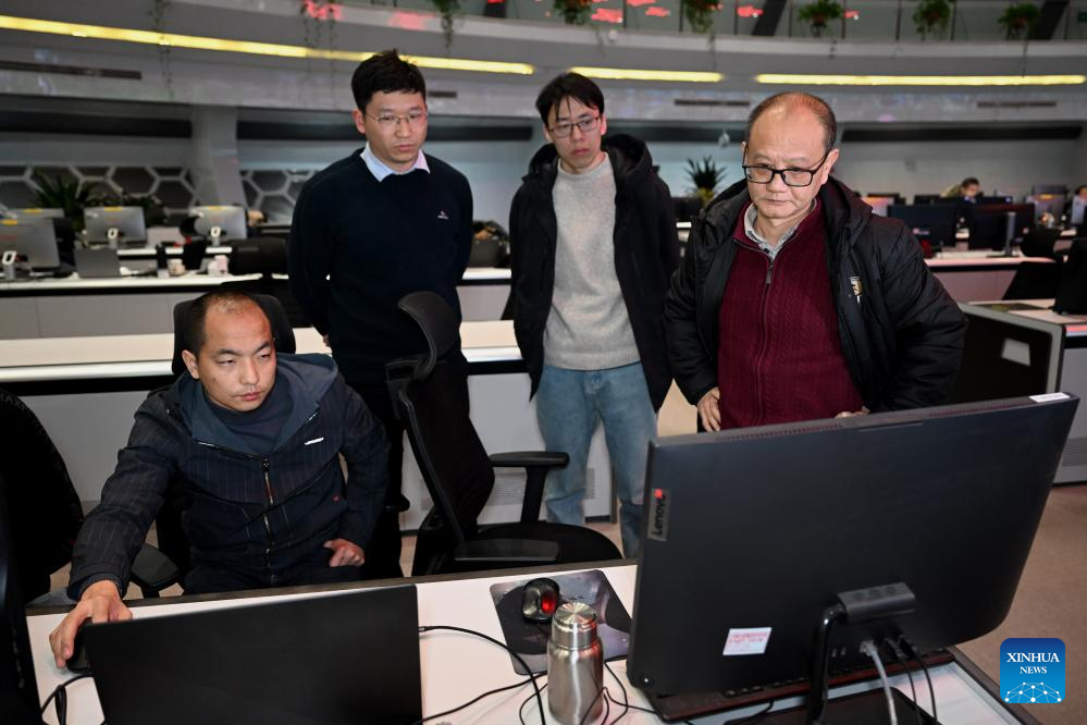 Gong Xianzu (1st, R), head of division of the Experimental Advanced Superconducting Tokamak Physics and Experimental Operations, communicates with team members after an experiment in Hefei, East China's Anhui province, Jan 16, 2025. [Photo/Xinhua]