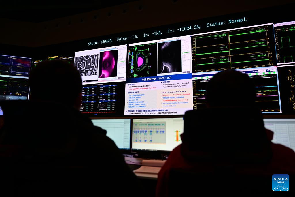 Team members of division of the Experimental Advanced Superconducting Tokamak Physics and Experimental Operations observe data during an experiment in Hefei, East China's Anhui province, Jan 20, 2025. [Photo/Xinhua]