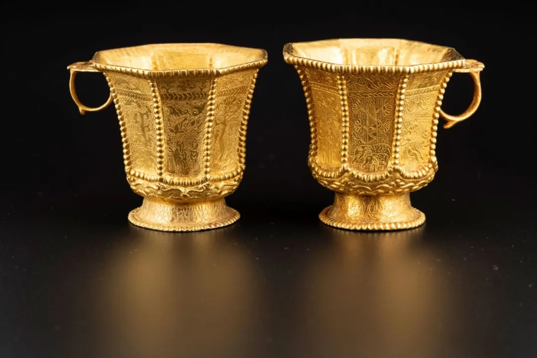 Gold cups with figure motifs [Photo/Official WeChat account of the Suzhou Museum]