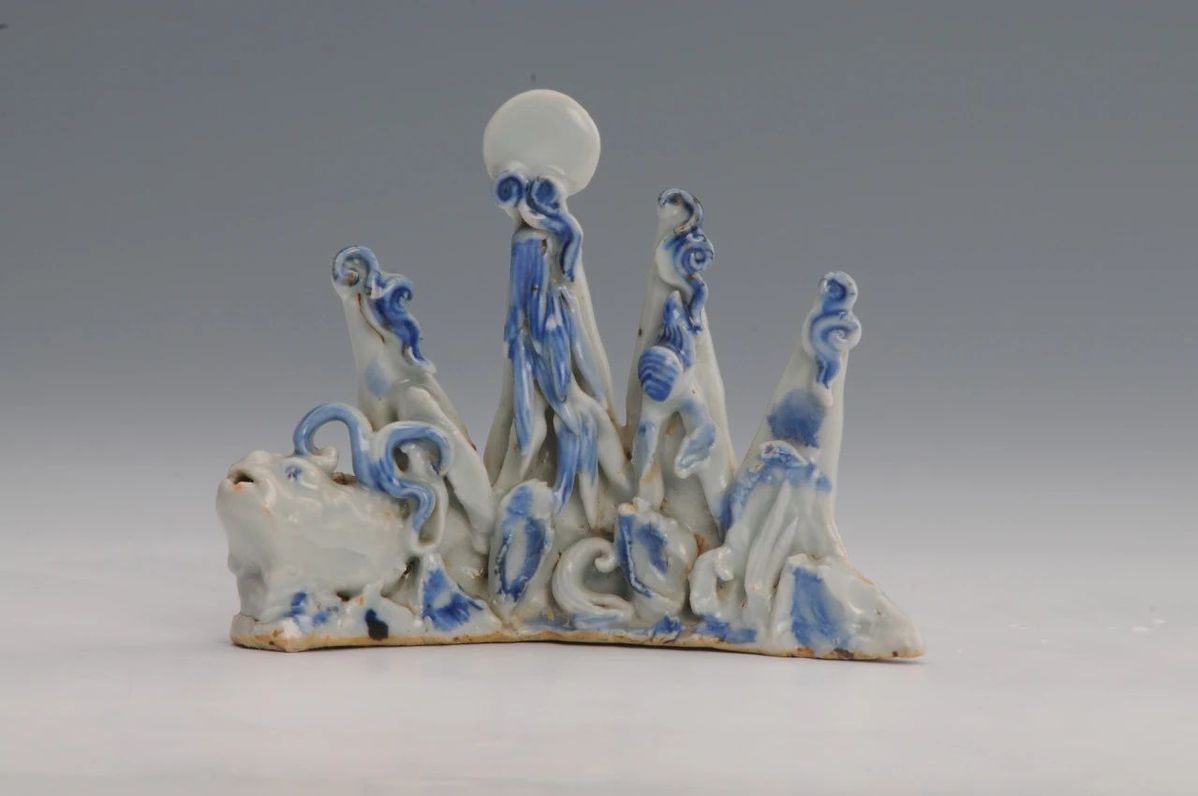 Blue-and-white mountain-shaped pen rack, Yuan Dynasty, from the collection of Hangzhou Museum [Photo/Official WeChat account of Shanghai Museum]