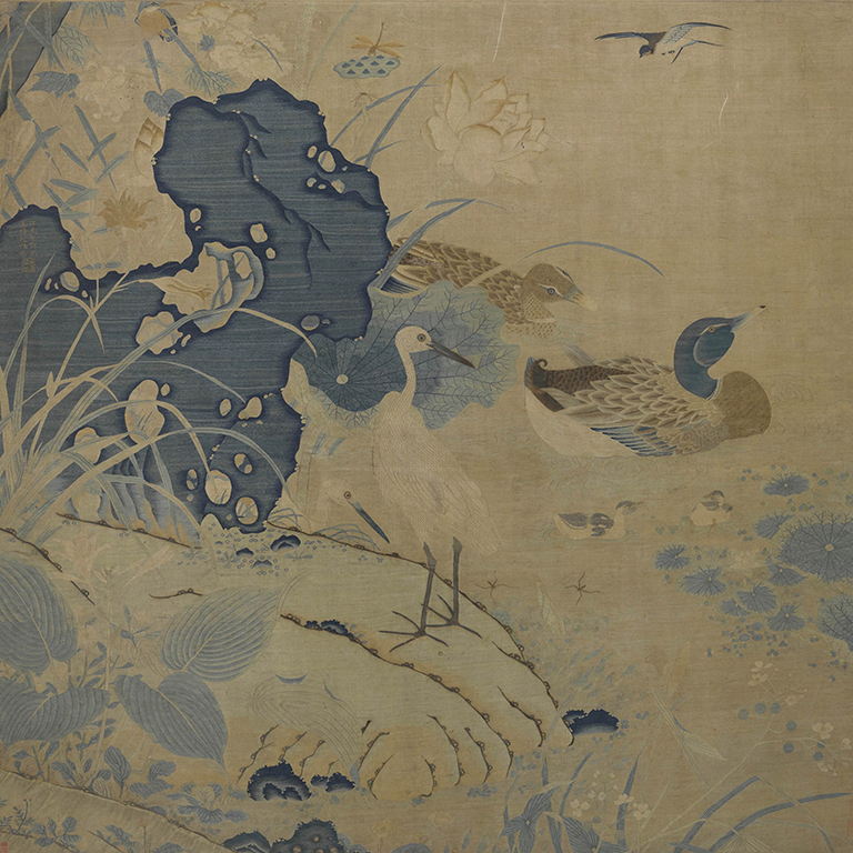 Let’s appreciate an exquisite Chinese silk tapestry woven with kesi technology from the Southern Song Dynasty (1127-1279)! The weaver Zhu Kerou used her superb skills to vividly fashion a fine-line painting depicting small ducks swimming in a lotus pond. This masterpiece is now in the collection of the Shanghai Museum.
