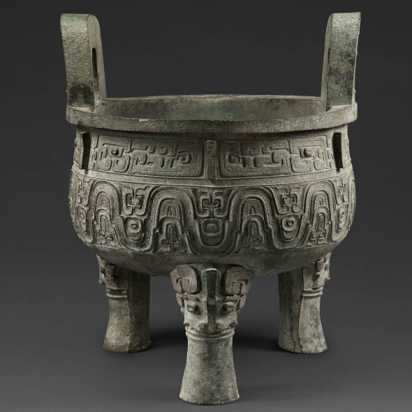 The tripod, which dates back to the end of the 11th century BC, is boldly decorated with abstract motifs and bears a lengthy inscription of 290 characters on its interior. This inscription represents the masterful calligraphy of ancient China and provides detailed information on the political and economic situation of its time.