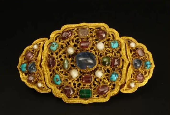 Gold belt accessory embedded with gems, Ming Dynasty [Photo/Official WeChat account of Shandong Museum]