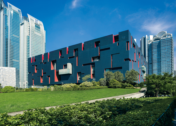 The building was designed as a rectangular container, with the exterior space’s design inspired by the carved ivory ball which is a traditional handicraft in Guangdong province.