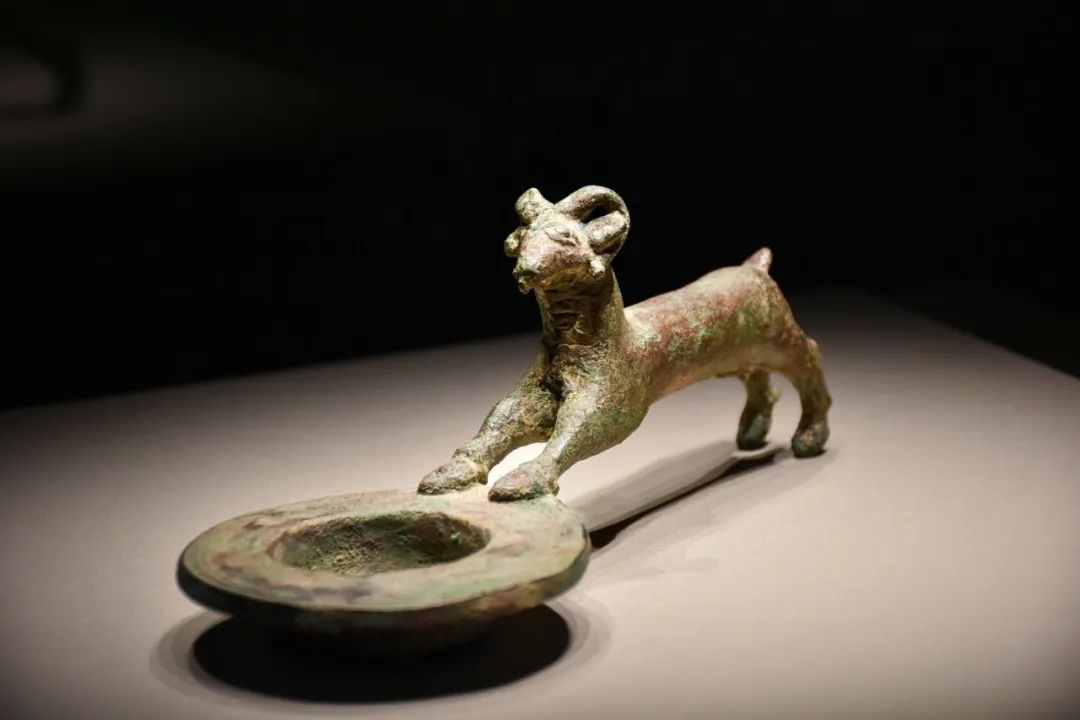 Bronze lamp with a goat-shaped handle [Photo/Official WeChat account of the Sanxingdui Museum]