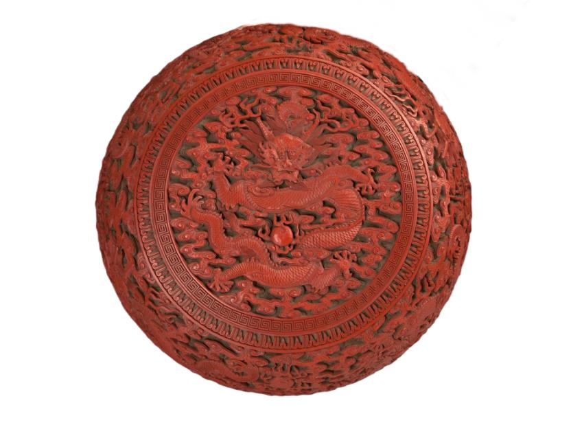Red-lacquered box with motifs of a dragon chasing a pearl, Qing Dynasty, from the collection of Tianjin Museum [Photo/Official WeChat account of Tianjin Museum]