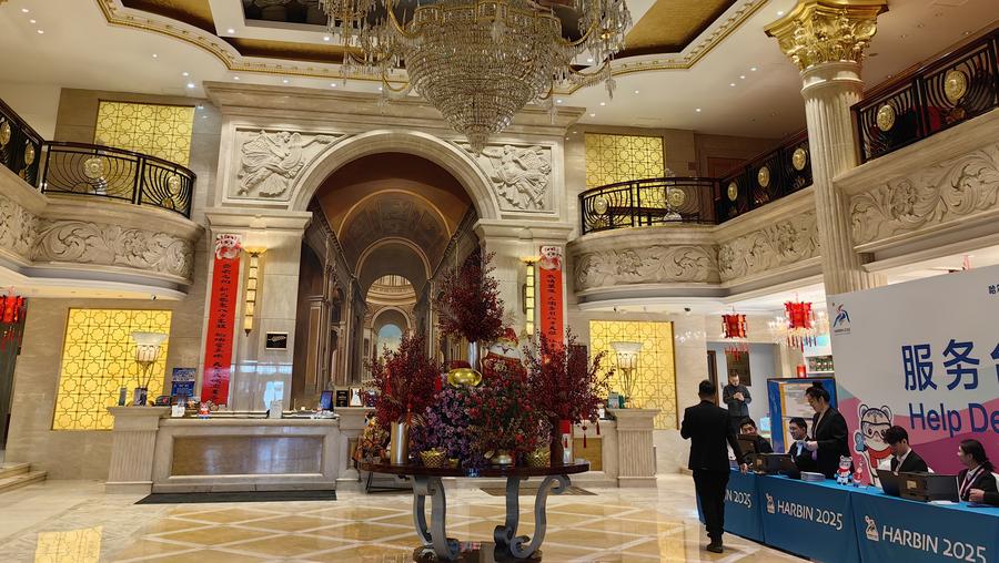 The New Paris Hotel, located on Zhongshan Road in Harbin, is one of the designated media reception hotels. Inside, red lanterns and festive couplets contribute to a vibrant New Year atmosphere.