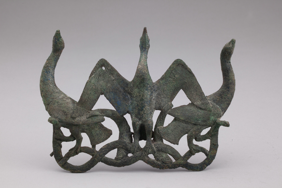 Since the Warring States Period (475-221 BC), snakes were sometimes perceived as evil creatures which might disrupt the dead. Consequently, tomb artifacts frequently depicted guardian beasts chewing or trampling snakes to ward off their proximity to the tombs.