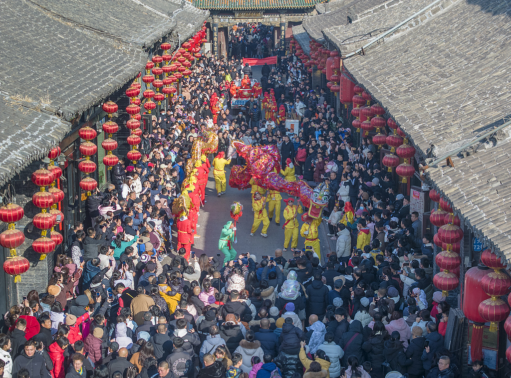 Folk artists bring the ancient city of Pingyao to life with Shehuo, a traditional folk performance in Jinzhong, Shanxi province on Feb 2, 2025. [Photo/VCG]