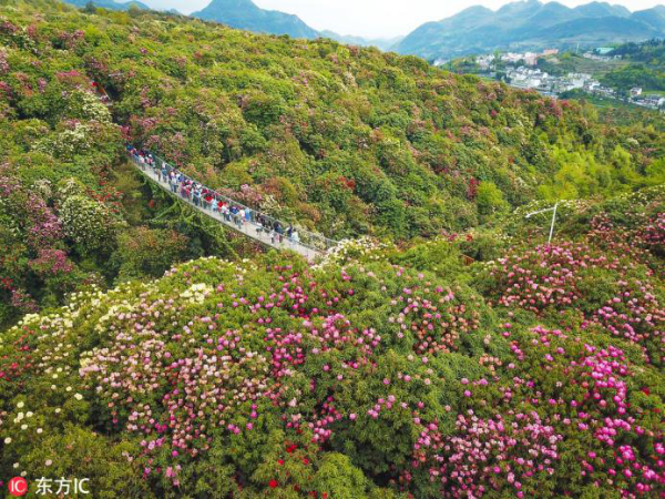 The area is home to over 10 ethnic groups, including the Yi, Miao, Bai, Man and Bouyei peoples, whose populations account for 71 percent of the 110,000 residents. Since 2015, Bailidujuan Scenic Spot has launched helicopter service and a hot-air balloon project to enable tourists to enjoy the beauty of the "flower sea" from the above.