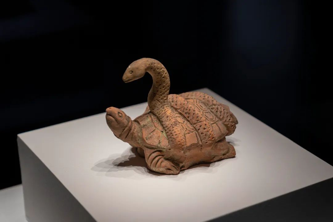 Glazed pottery figurine of the Black Tortoise (a tortoise intertwined with a snake), Northern Song Dynasty (960-1127), from the collection of Zhenjiang Museum [Photo/Official WeChat account of the China Museum of Southern Water Town Culture]