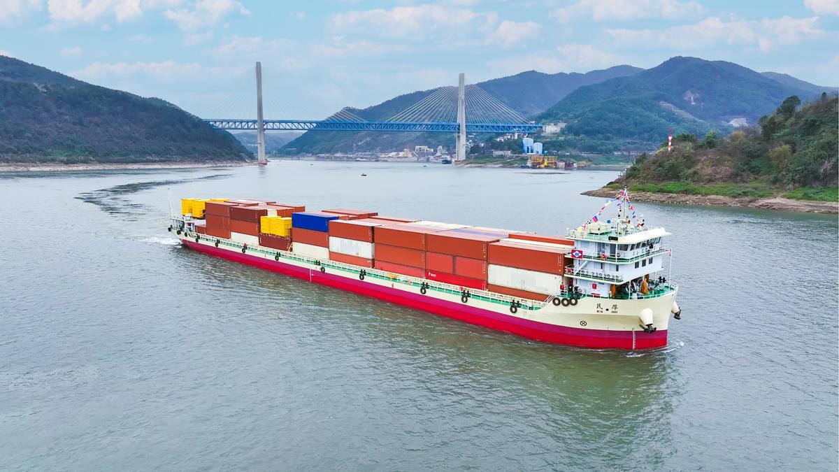 On Saturday morning, a milestone was achieved in China's inland waterway transportation history as the Minhou, a newly introduced 130-type methanol-diesel dual-fuel distribution vessel, docked at Chongqing's Guoyuan Port after departing from Shanghai.