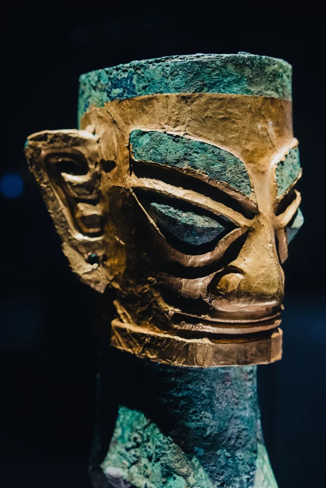 The bronze head with gold mask from the Sanxingdui site [Photo/Official WeChat account of the Sanxingdui Museum]