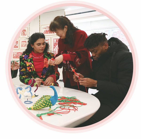 Nearby, at the knotting booth, Munkhorgil Munkhjin from Mongolia was deeply focused on learning the traditional Chinese knotting art.