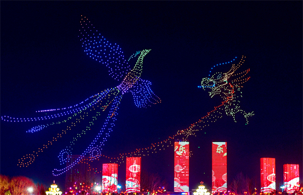 A drone show carrying best wishes for Chinese New Year is staged. [Photo/IC]