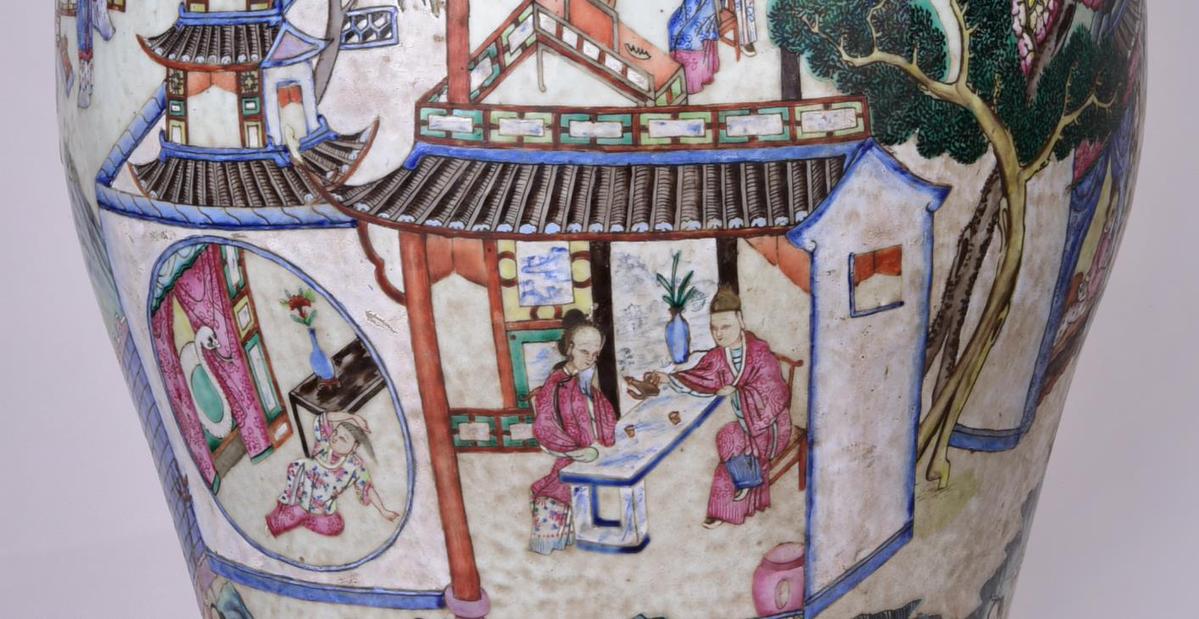 Famille rose vase depicts Chinese snake-themed folktale
