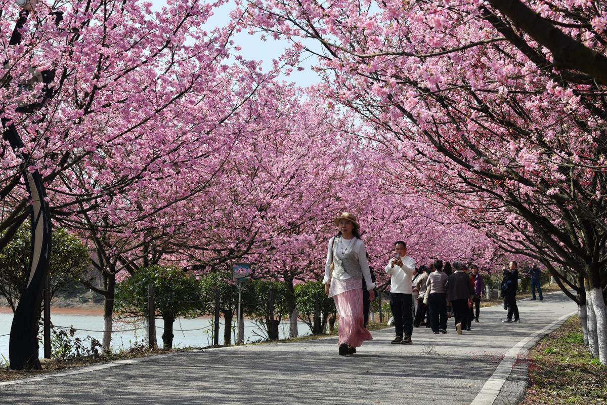 Tourists enjoy cherry blossoms at a park in Changning, Hunan province on Friday. [Photo by Qian Hui/For chinadaily.com.cn]
