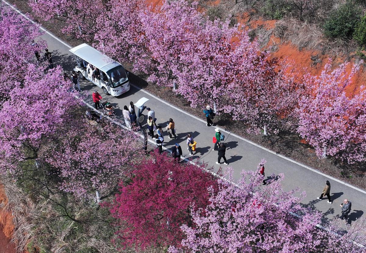 Tourists enjoy cherry blossoms at a park in Changning, Hunan province on Friday. [Photo by Qian Hui/For chinadaily.com.cn]