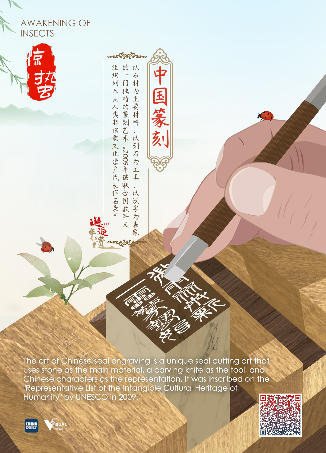 The traditional Chinese solar calendar divides the year into 24 solar terms. Awakening of Insects (Chinese: 惊蛰) falls on March 5 and ends on March 19 this year.