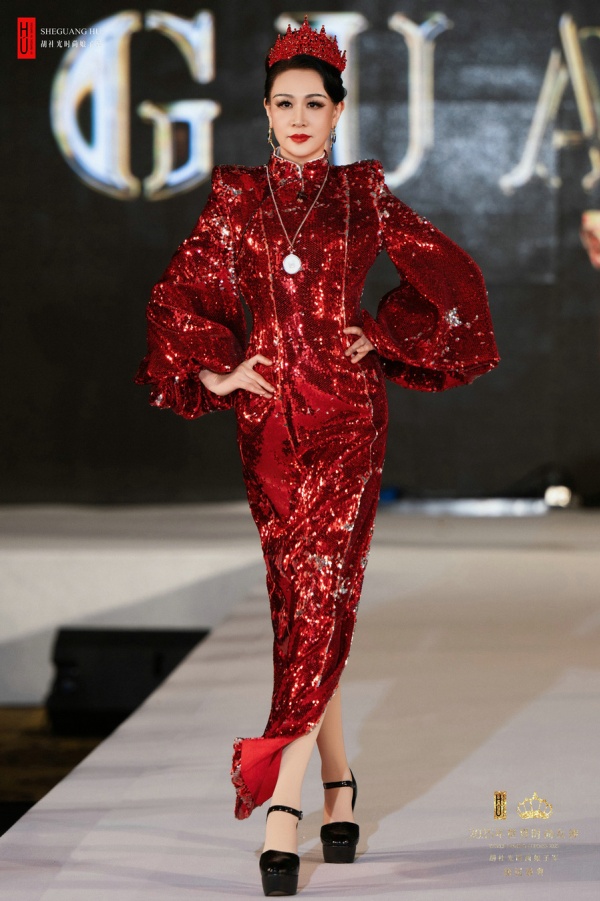 All the models strutted the catwalk in Hu's haute couture designs, sporting the red crown, a symbol of courage and wisdom. Hu presented each of them with a trophy to recognize the pursuit of their fashion dreams regardless of age.