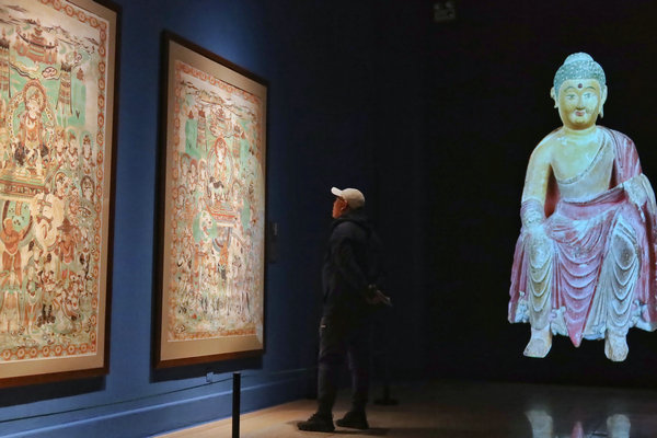 The exhibition is divided into two parts held on separate floors at the NAMOC — the third floor displays artifacts and paintings of modern artists' replicas inspired by Dunhuang murals found in the grottoes and Buddhist figurines until June 3; the fifth floor is dedicated to Buddhist sutras, writings and historical documents on paper, cotton, bamboo and wooden clips, reflecting the early development of Chinese characters and calligraphy on show until Aug 17.