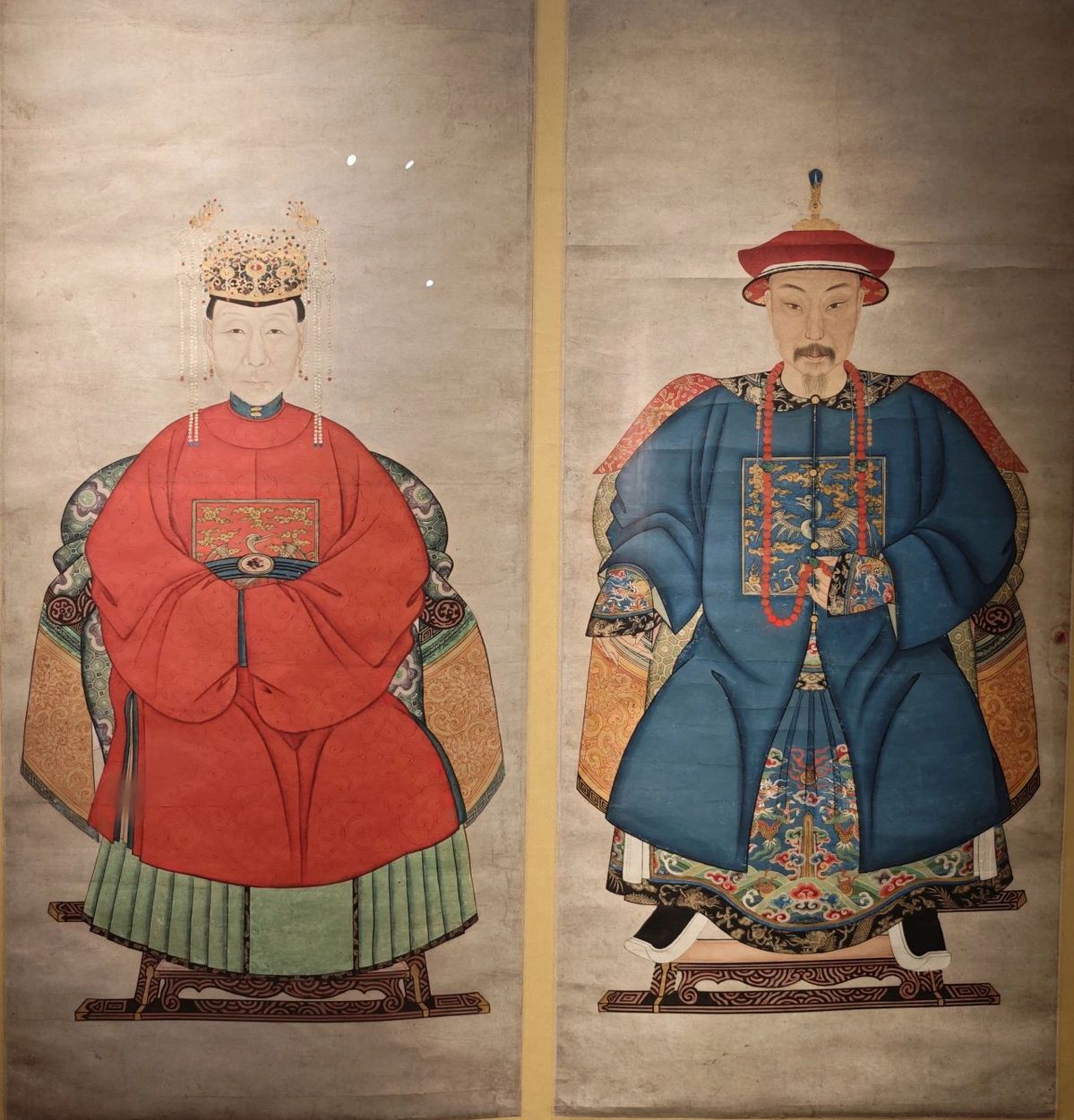 Portrait of a Qing Dynasty (1644-1911) official and his wife [Photo/Official WeChat account of Huai'an Museum]