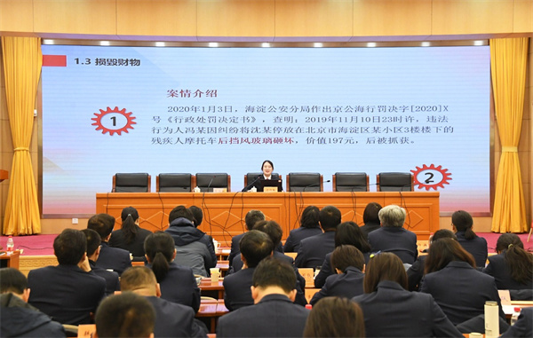 Yan Xingran, a judge with the People's Court of Haidian district of Beijing, gives a lecture at the administration office of Summer Palace in Beijing, March 4, 2025. [Photo/Xinhua]