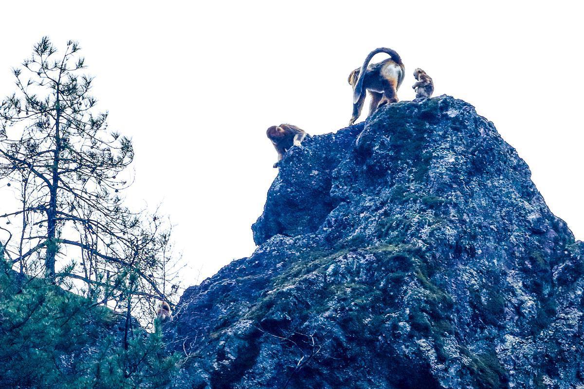 Rare Chinese monkeys spotted scaling cliffs in Hubei