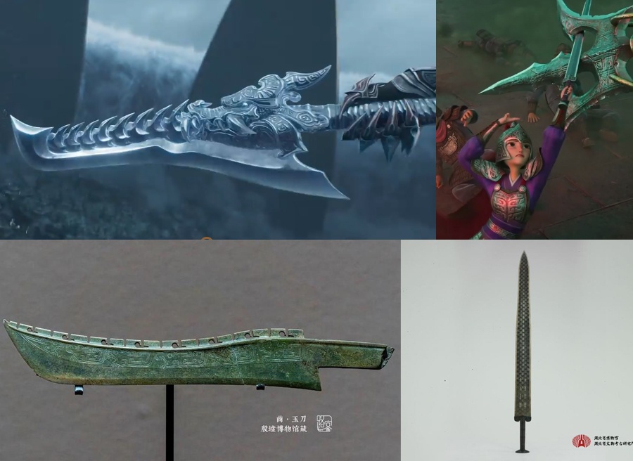Ne Zha's mother, Lady Yin, wields a sword resembling the 2,500-year-old sword of the legendary King Goujian, housed in the Hubei Provincial Museum.