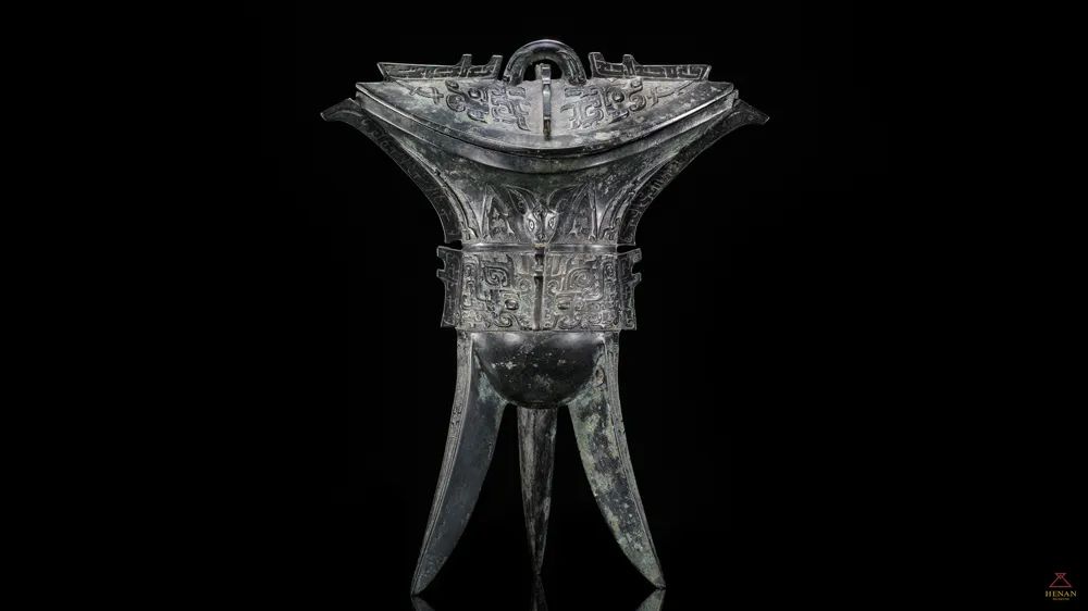 This stunning bronze jue goblet is a wine vessel from the Western Zhou Dynasty (c.11th century-771 BC). With its sleek, black-lacquer shine, grand and dignified form and intricate motifs, this vessel radiates noble elegance.