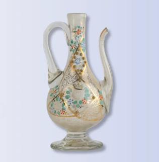 Glass ewer with floral motifs, 16th century, from the collection of the Museum of Glass and Ceramics in Iran [Photo/Guangdong Museum official WeChat account]