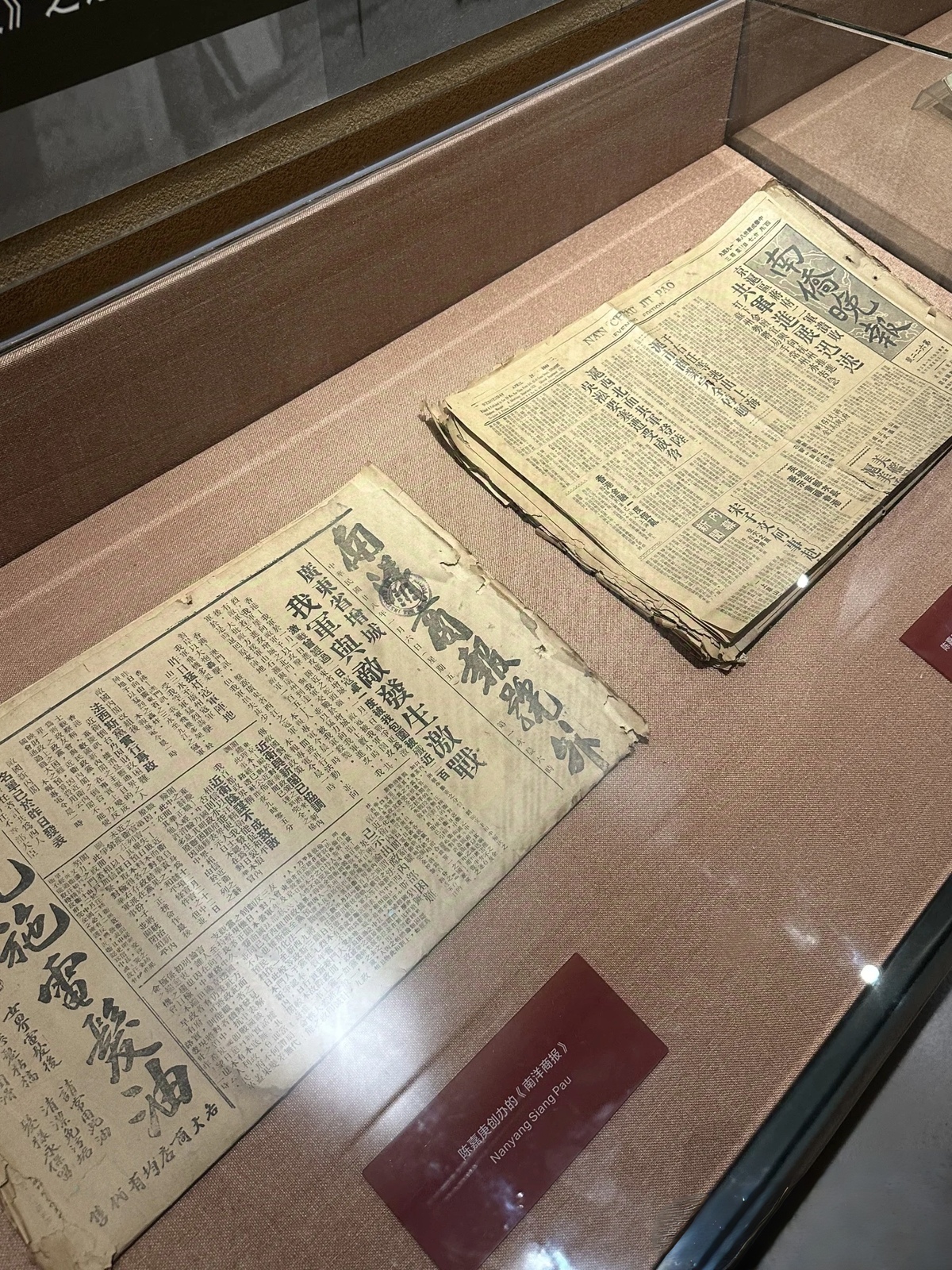 Copies of Nanyang Business Daily (Nanyang Siang Pau) and Nan Chiau Jit Pao (Evening Edition), two Chinese-language newspaper founded by Tan Kah-kee [Photo provided to chinaservicesinfo.com]