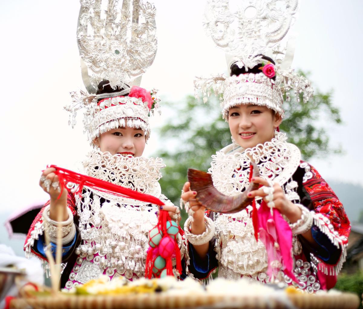 Miao people celebrate during previous Miao Sisters Festivals. [Photo by Zhang Kui/ for chinadaily.com.cn]