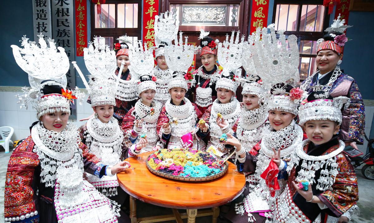 Miao people celebrate during previous Miao Sisters Festivals. [Photo by Zhang Kui/ for chinadaily.com.cn]