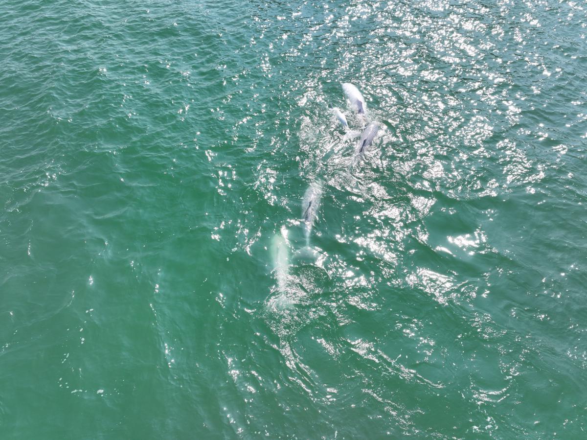 A group of Chinese white dolphins was recently spotted frolicking in the waters near the Double Happiness Island in Zhangzhou Development Zone, Zhangzhou, Fujian province.