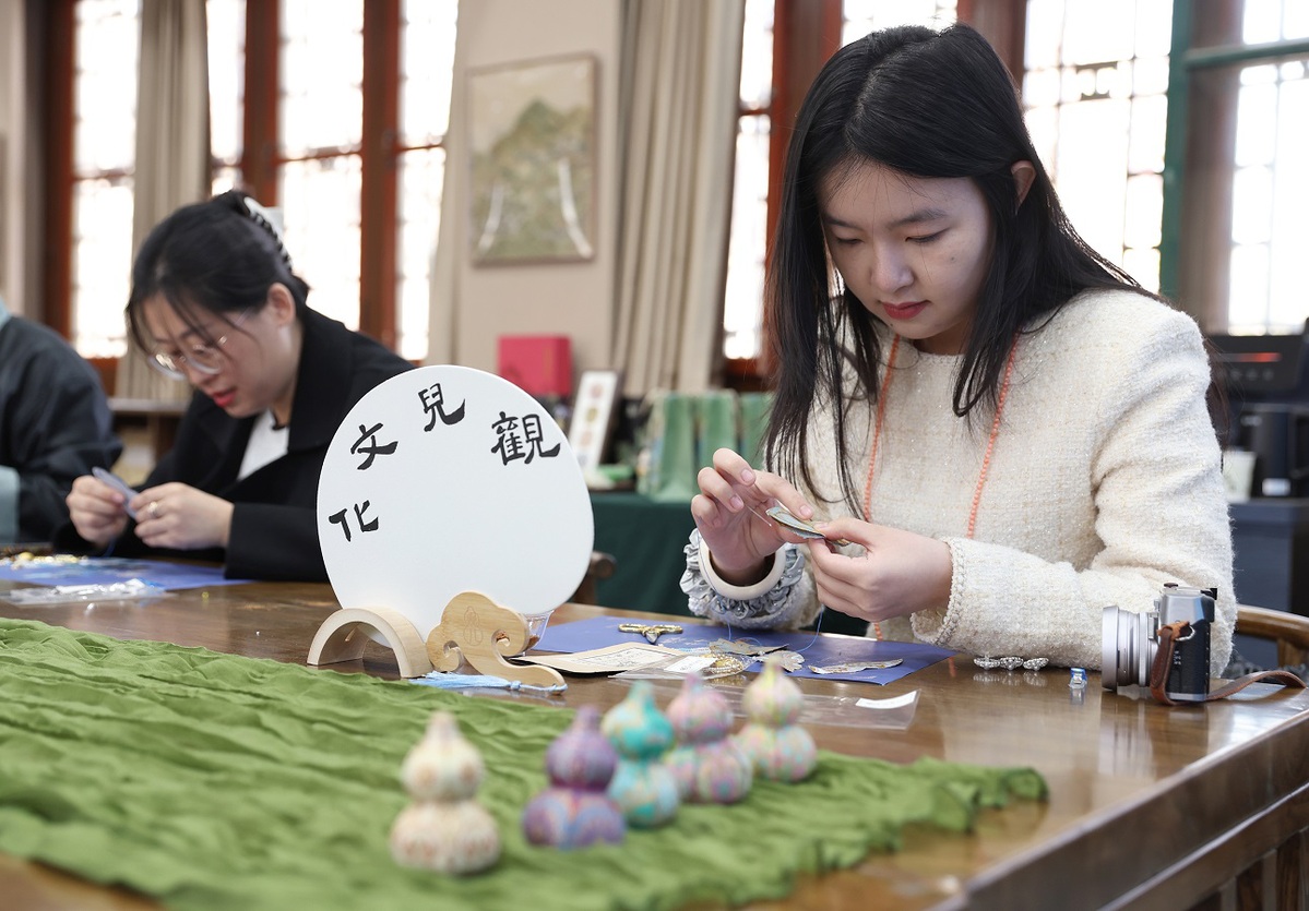 Tourists participate in handicraft activities at Yuanmingyuan Park in Beijing, April 2, 2025. [Photo by Zou Hong/chinadaily.com.cn]