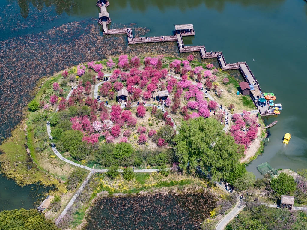 Visitors flocked to Lizhong Water Forest Park in Taizhou, Jiangsu province, for the Qingming holiday, where they could explore both the water and the land.