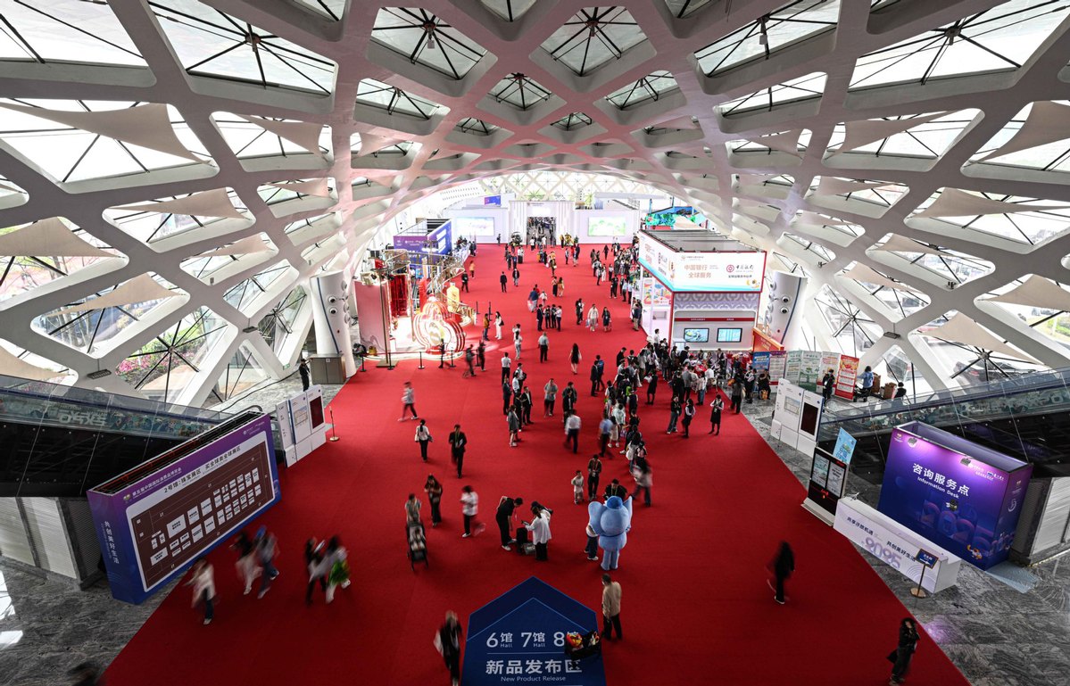 This photo taken on April 13, 2025 shows a scene at the 5th China International Consumer Products Expo (CICPE) in Haikou, South China's Hainan province. [Photo/Xinhua]