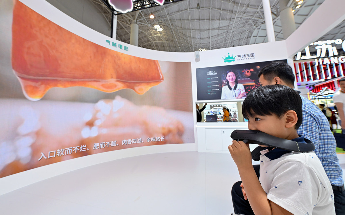 Visitors enjoy a scent-enhanced movie at the 5th China International Consumer Products Expo (CICPE) in Haikou, South China's Hainan province, April 13, 2025. [Photo/Xinhua]