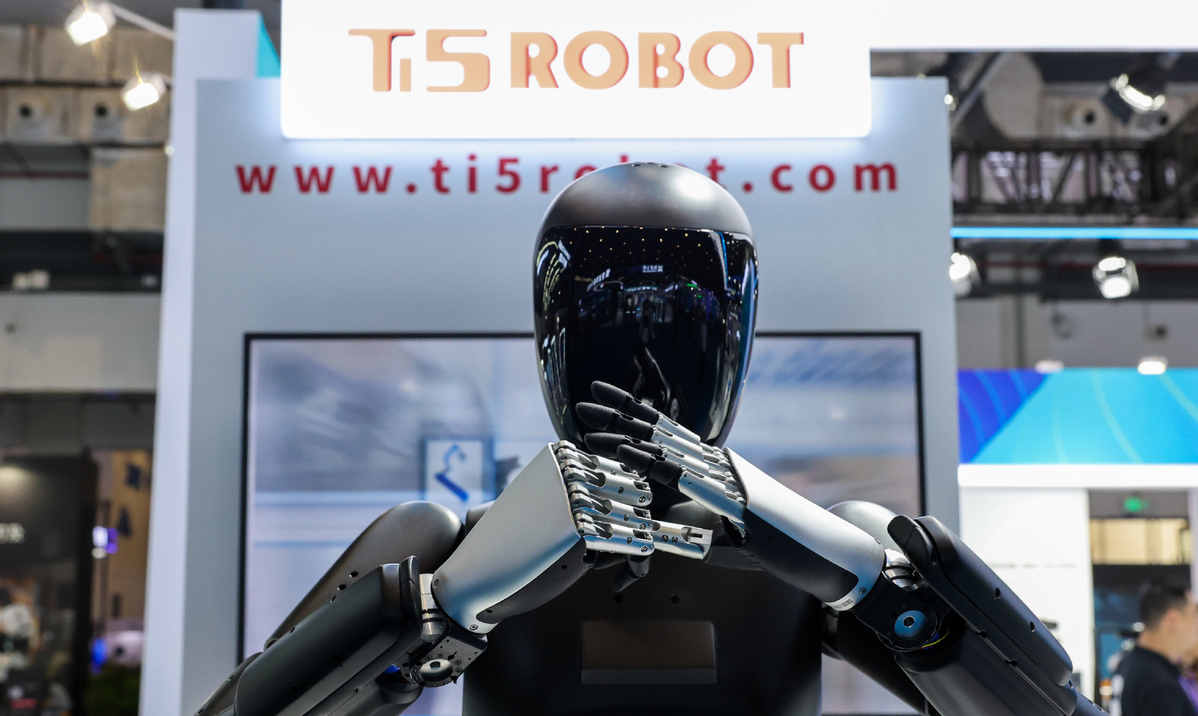 A robot is on display at the 5th China International Consumer Products Expo (CICPE) in Haikou, South China's Hainan province, April 13, 2025. [Photo/Xinhua]