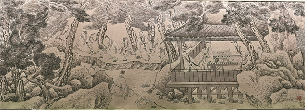 An exhibited Yuan Dynasty (1271-1368) rockery stone, named "cloud-embracing", reveals a favorite element in Chinese gardens; a bronze statuette Neptune with a Dolphin stands a few meters away. Once set atop a fountain in a villa of Rome, the statuette was made after Lorenzo Bernini's model and also provides an intriguing glimpse of a classical Italian garden.