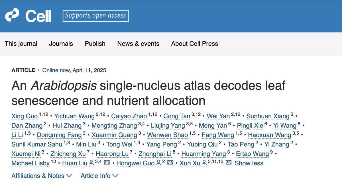 Zhu Yuxian, an academician of the Chinese Academy of Sciences and professor at Wuhan University, said: "For researchers in plant biology, this study holds significant resource value and can be continuously mined to address various biological questions related to senescence and other developmental processes."