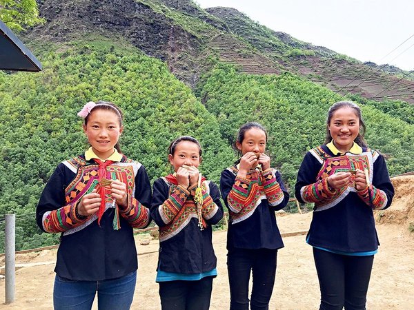 Ethnic Yi girls play kouxian.