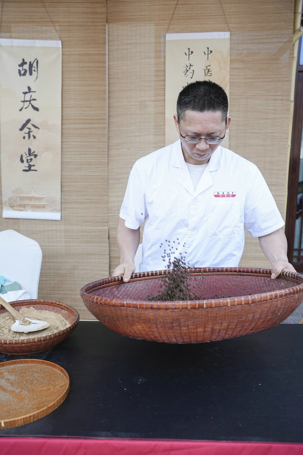 A traditional Chinese medicine practitioner makes pills out of powdered ingredients.[Photo provided to chinadaily.com.cn]